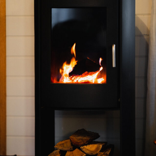 The pantry is equipped with everyday supplies to get you started – tea bags and tea leaves, salt and pepper, oil, herbs and sauces, and ground coffee. A Bosch washing machine and separate dryer can be found behind the cupboard doors in the island bench. Moving through the house (but first, take a sneak peek at your hamper full of local products and wine) into the living area, where you will find all the comforts, including a wood fire with a well-stocked woodpile, reverse cycle heating and cooling, luxurious furnishings, large TV, Chromecast, Wi-Fi throughout, books, and a Bang and Olufsen Bluetooth speaker.