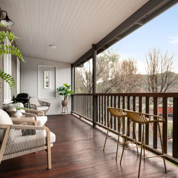 Out on the deck, you will find a Weber BBQ and even more luxurious furnishings where you can sit peacefully on the elevated verandah with a glass of wine in hand and admire the stunning view over the old Bright railway station across the valley all the way to the mountains.
